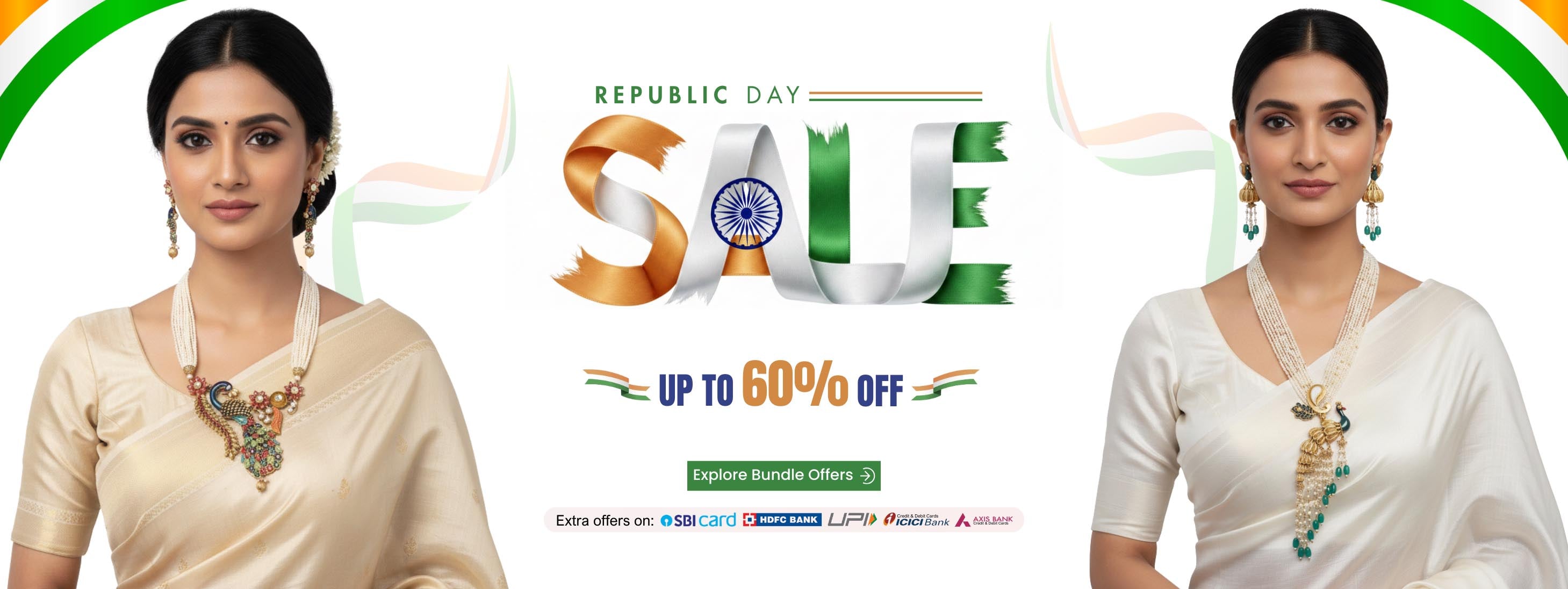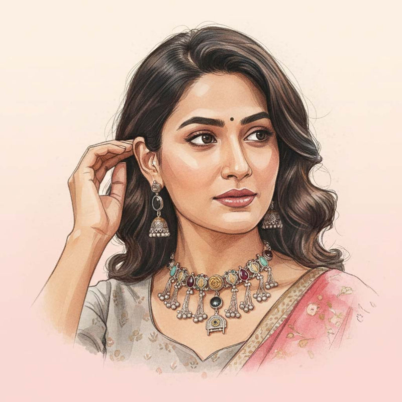 We offer a wide range of premium imitation jewellery, including AD (American Diamond), Kundan, Meenakari, Oxidised, Matte Gold, 925 Silver-finish, Anti-Tarnish, Wooden, Demi-fine, South Indian, Kashmiri, and Fashion jewellery—covering earrings, necklaces, rings, and sets for every occasion.