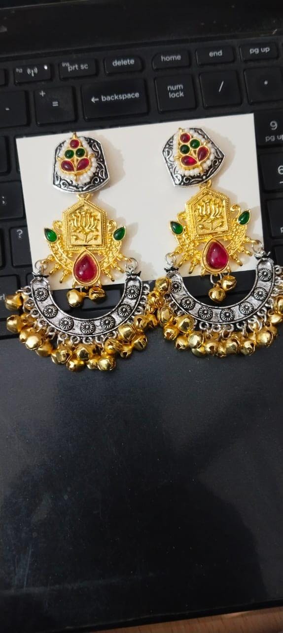 Unique Gold & Silver Color Dual Tone Oxidised Earrings For Stylish Women