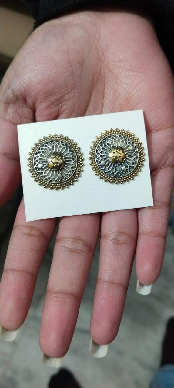 Gold & Silver Color Oxidised Earrings Showing Luxurious Dual-Tone Artistry Ideal For Celebrations